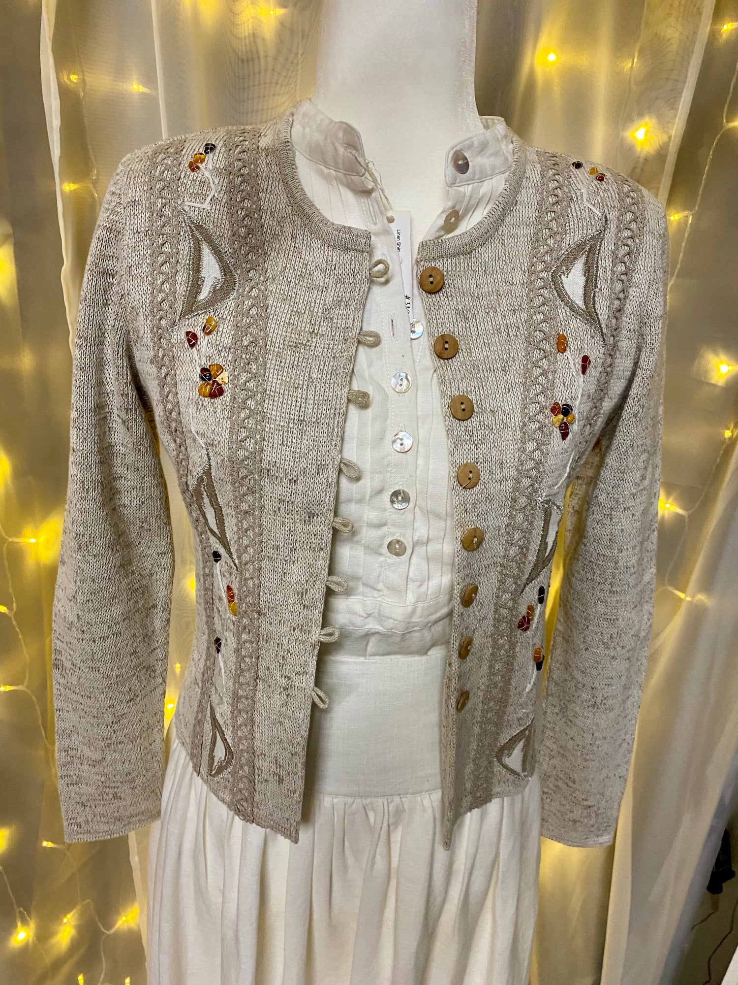 From the well-known brand "Linen Me" this beautiful woven linen sweater is perfect for casual wear, work or an evening out. A wonderful natural linen shade, a timeless addition to any wardrobe. Sweater has small amber pieces sown into the front to give it a special look of elegance.